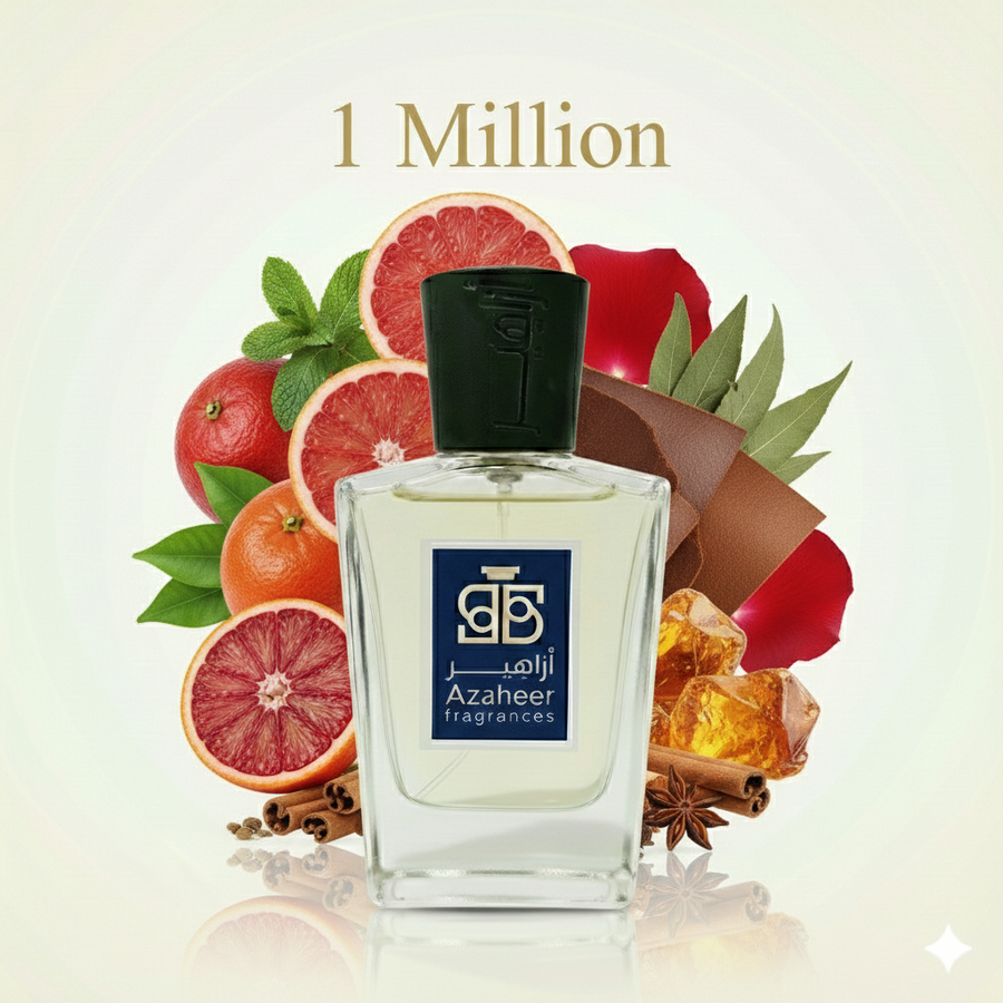 1 Million at Azaheer Fragrances: blood mandarin, grapefruit & mint; cinnamon, spices and rose; leather, amber, woody notes and Indian patchouli.