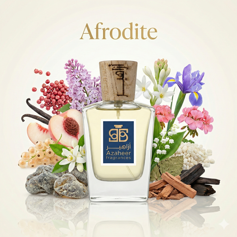 The fragrance opens with a seductive glow, where lilac, white peach, and white currant are wrapped in a creamy vanilla sweetness, creating a smooth and inviting introduction. As it evolves, Afrodite becomes more intimate and skin-close, revealing a luxurious floral heart of neroli, tuberose absolute, iris, and lily-of-the-valley that feels soft, polished, and effortlessly elegant. The dry-down is warm and sensual, blending grey amber, white musk, patchouli, sandalwood, and ebony to leave a clean, refined trail that feels expensive and quietly magnetic.