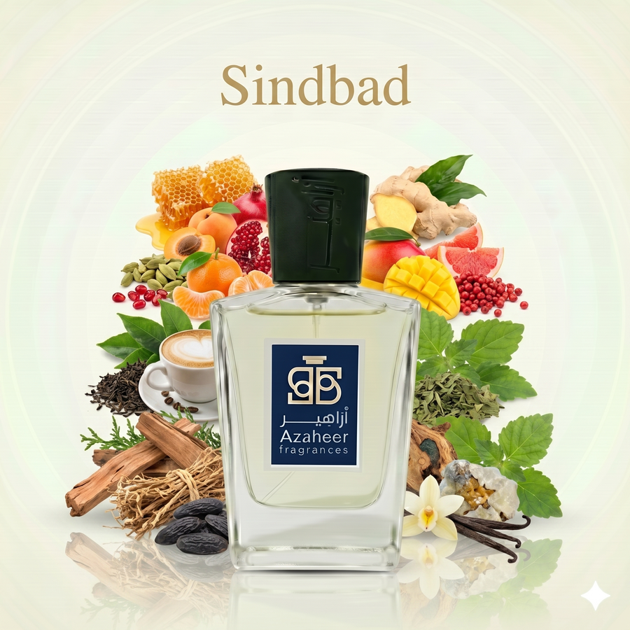 Sindbad at Azaheer Fragrances: honeyed fruits, black tea and cappuccino over tonka, vanilla, cedar, vetiver and patchouli.