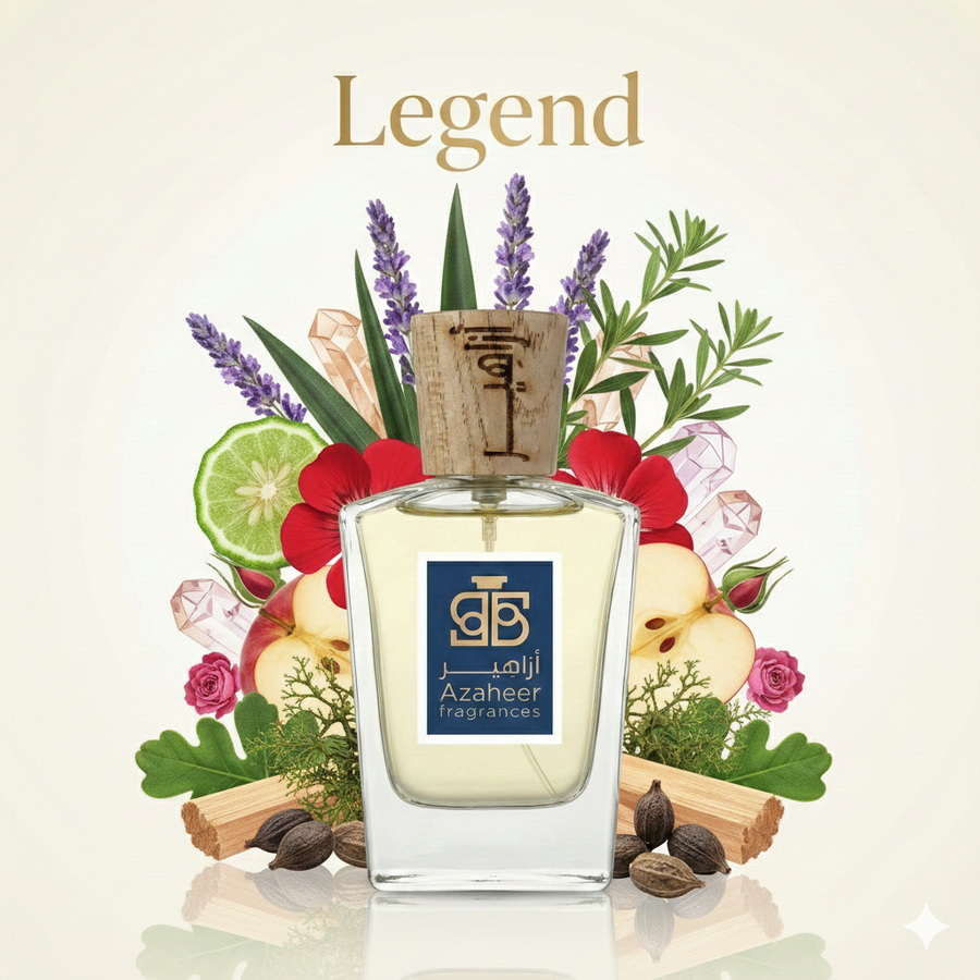 Montblanc Legend at Azaheer Fragrances: bergamot & lavender with pineapple leaf and verbena—oakmoss, apple and geranium heart—sandalwood/tonka base.