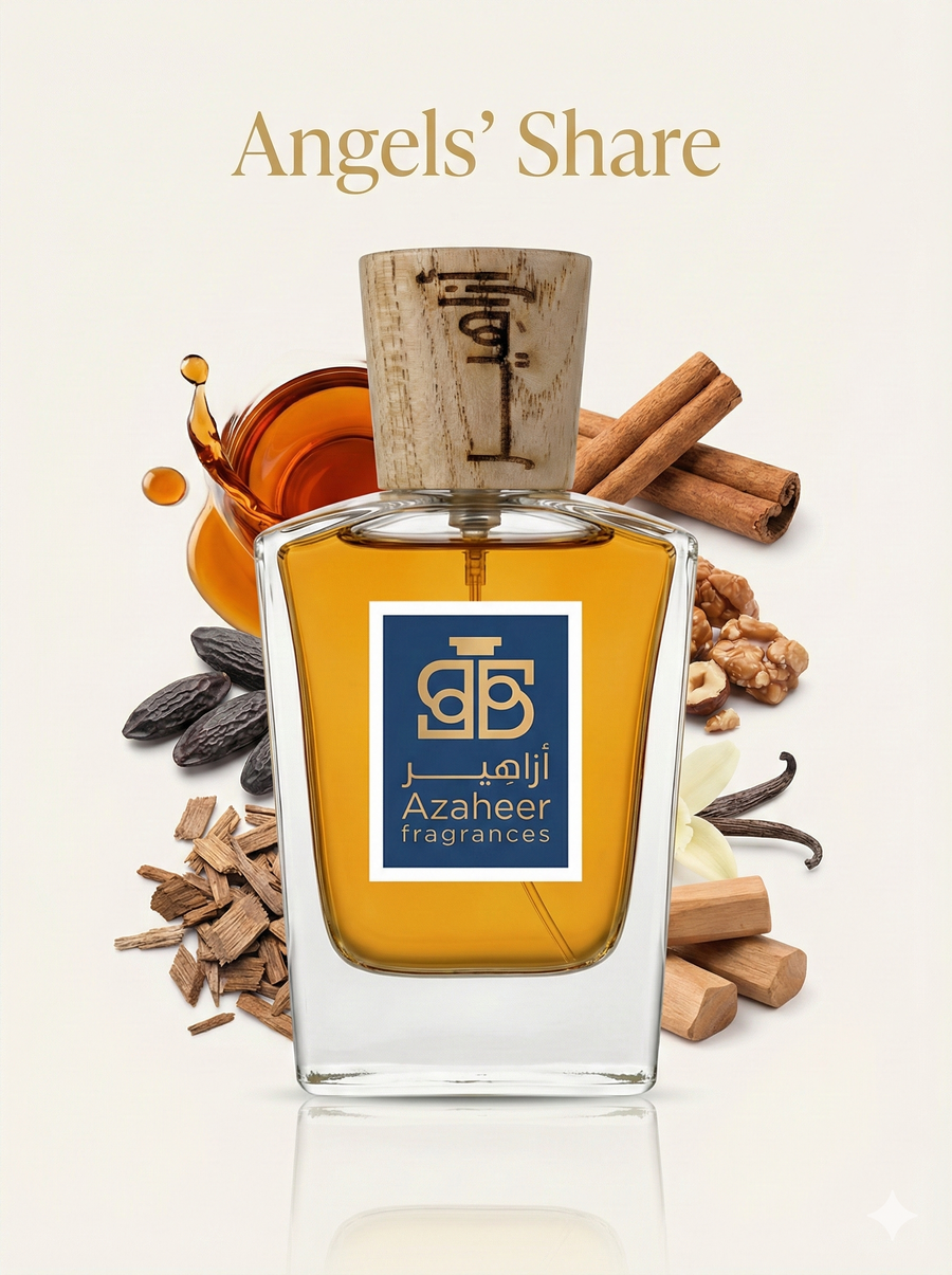 Angels’ Share by Kilian Paris, a luxury gourmand perfume with rich cognac, warm spices, and a creamy vanilla woody base – Azaheer Fragrances.
