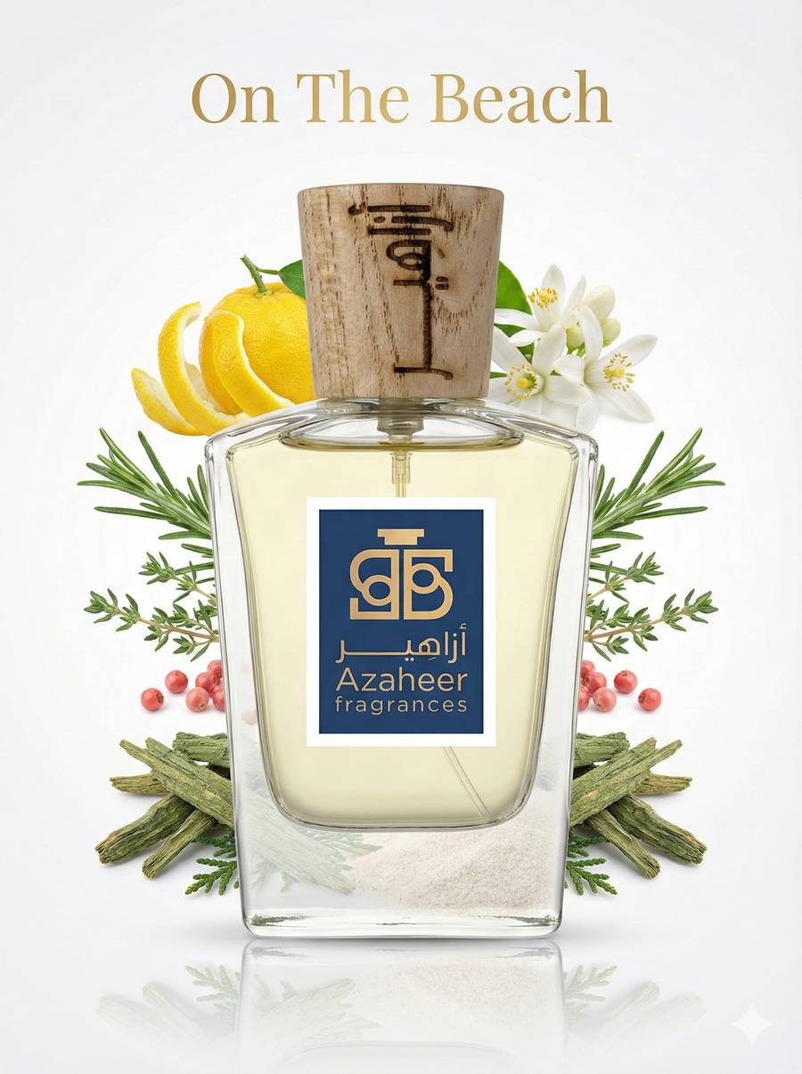 On The Beach by Louis Vuitton, a luxury fresh citrus aromatic perfume inspired by summer vibes and Mediterranean freshness – Azaheer Fragrances.