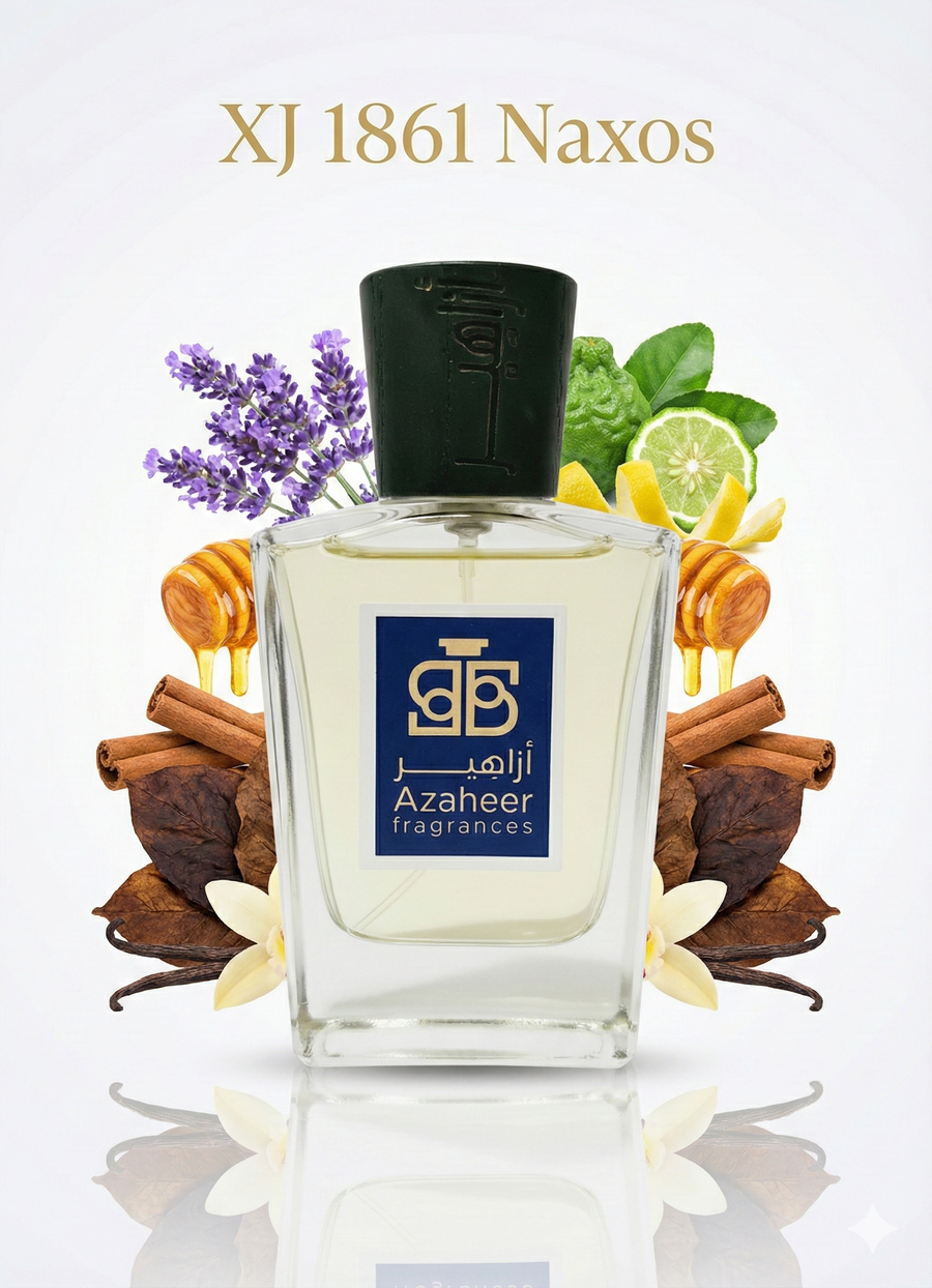 XJ 1861 Naxos by Xerjoff, a luxury aromatic gourmand perfume blending citrus freshness, honeyed spices, and rich tobacco warmth β Azaheer Fragrances.